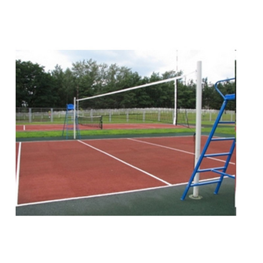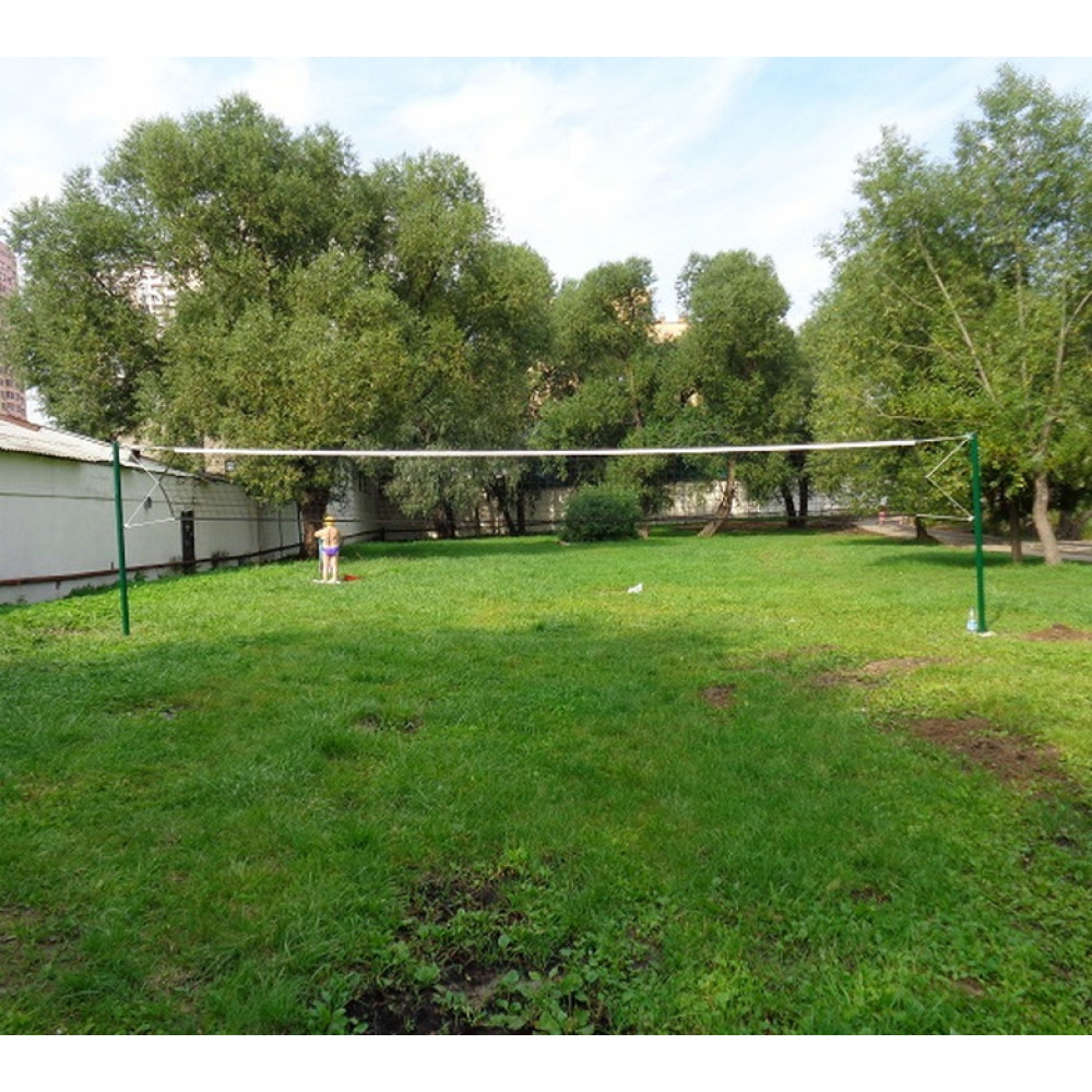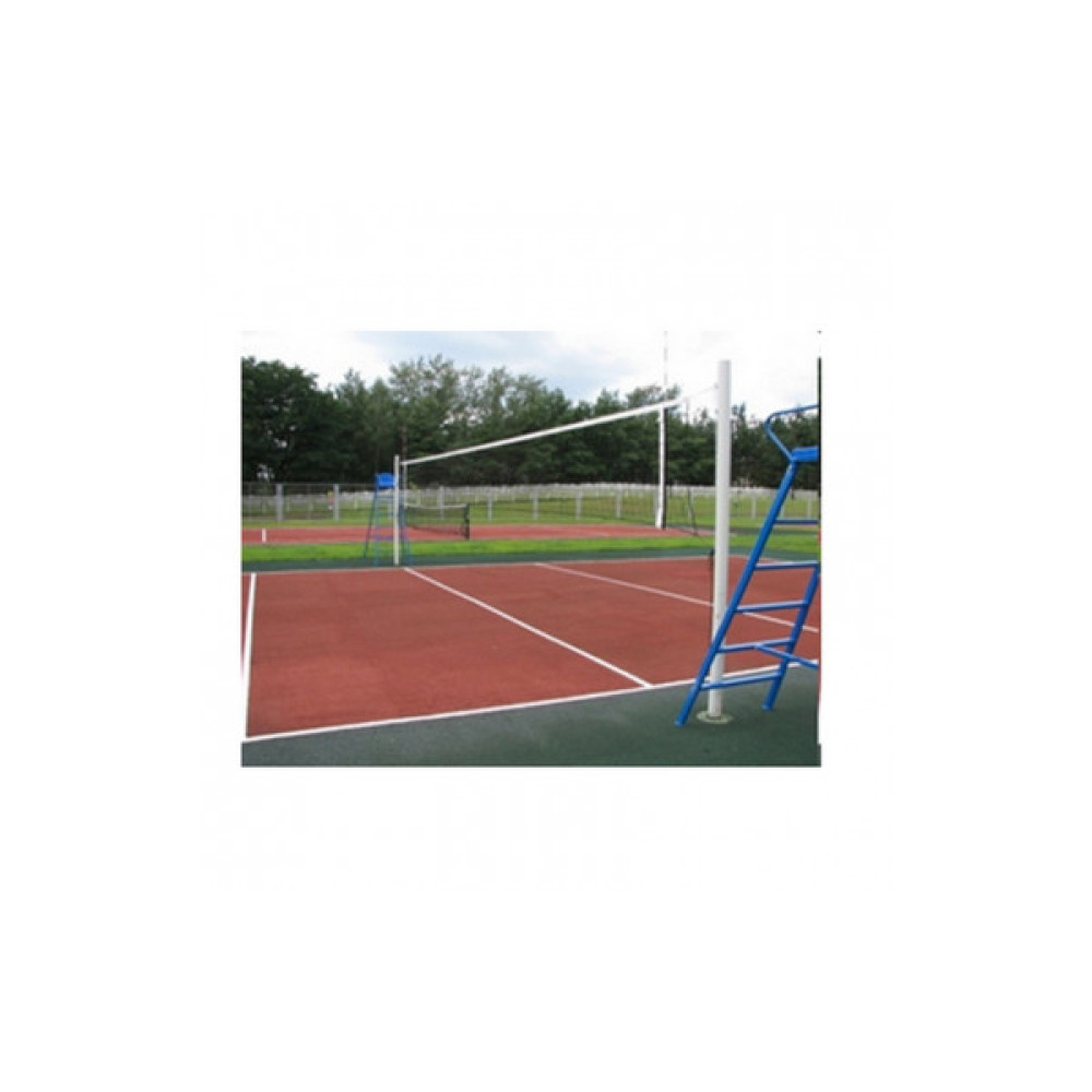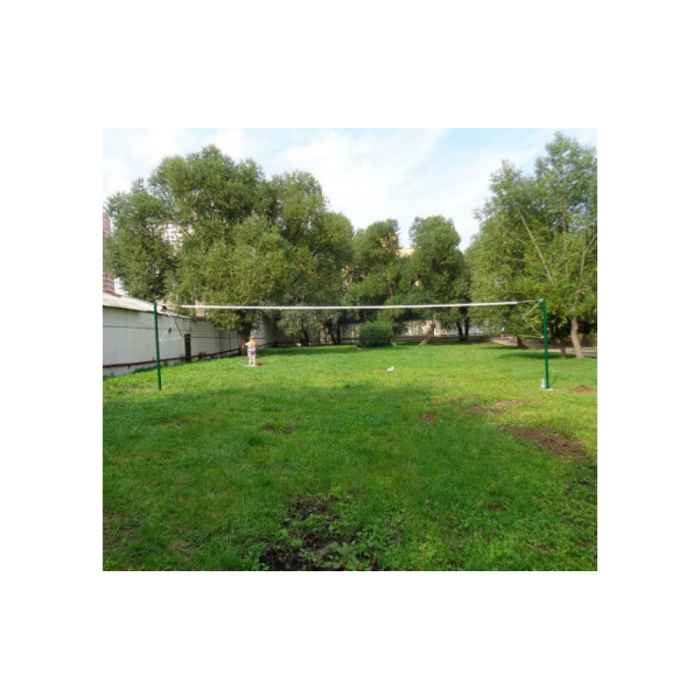 Стойки волейбольные, массовые, универсальные для спортивных площадок и залов, для бадминтона и большого тенниса, на стаканах, с тросом сетки и устройством натяжения, без сетки, комплект из 2 шт.