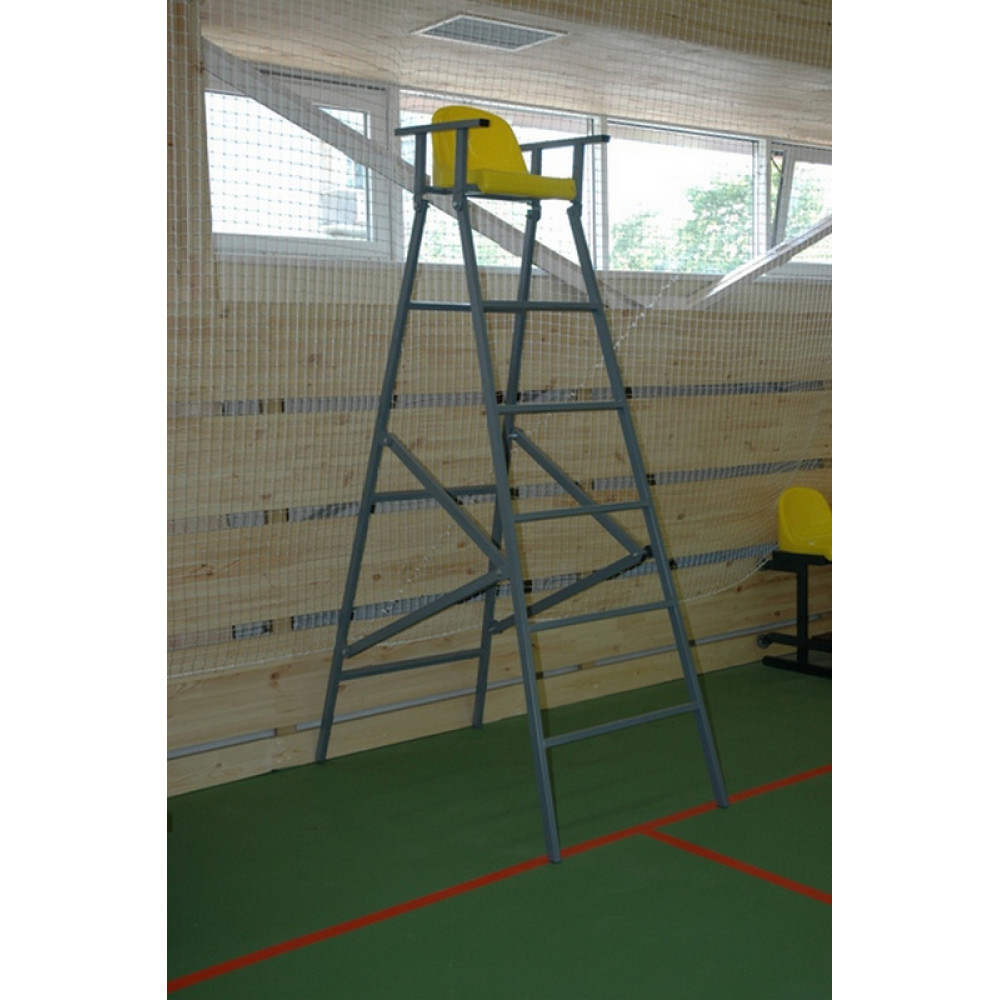 Вышка судейская универсальная применяется для судейства при игре в волейбол, теннис и бадминтон. Положение судьи - сидя. Представляет собой сборно-разборную складную конструкцию на металлических опорах из стального профиля квадратного сечения с пластиковым сидением. Судейская вышка может использоваться как в спортивных залах, так и на открытых уличных площадках. Складная конструкция легко разбирается, удобна в хранении и транспортировке.