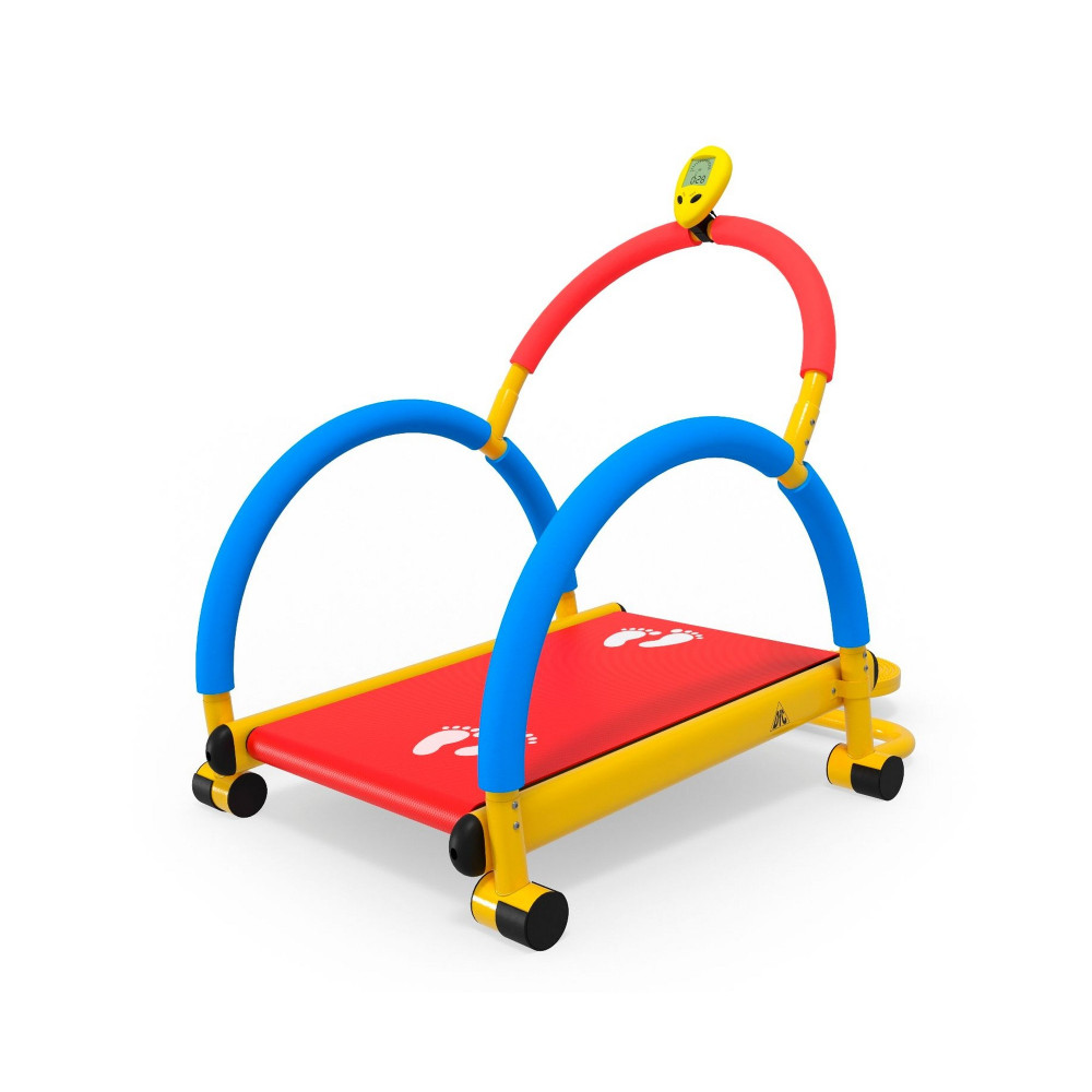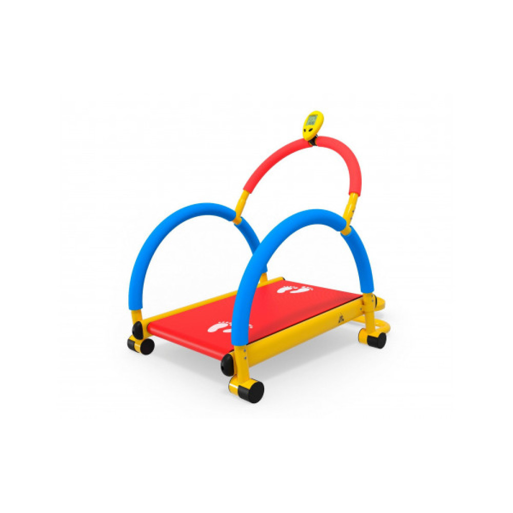 Дорожка подойдет для тренировки детей от 4 до 8 лет. Максимальная масса тела – до 70 кг. Встроенный компьютер отслеживает параметры тренировки: расстояние, количество оборотов, время и общая дистанция.