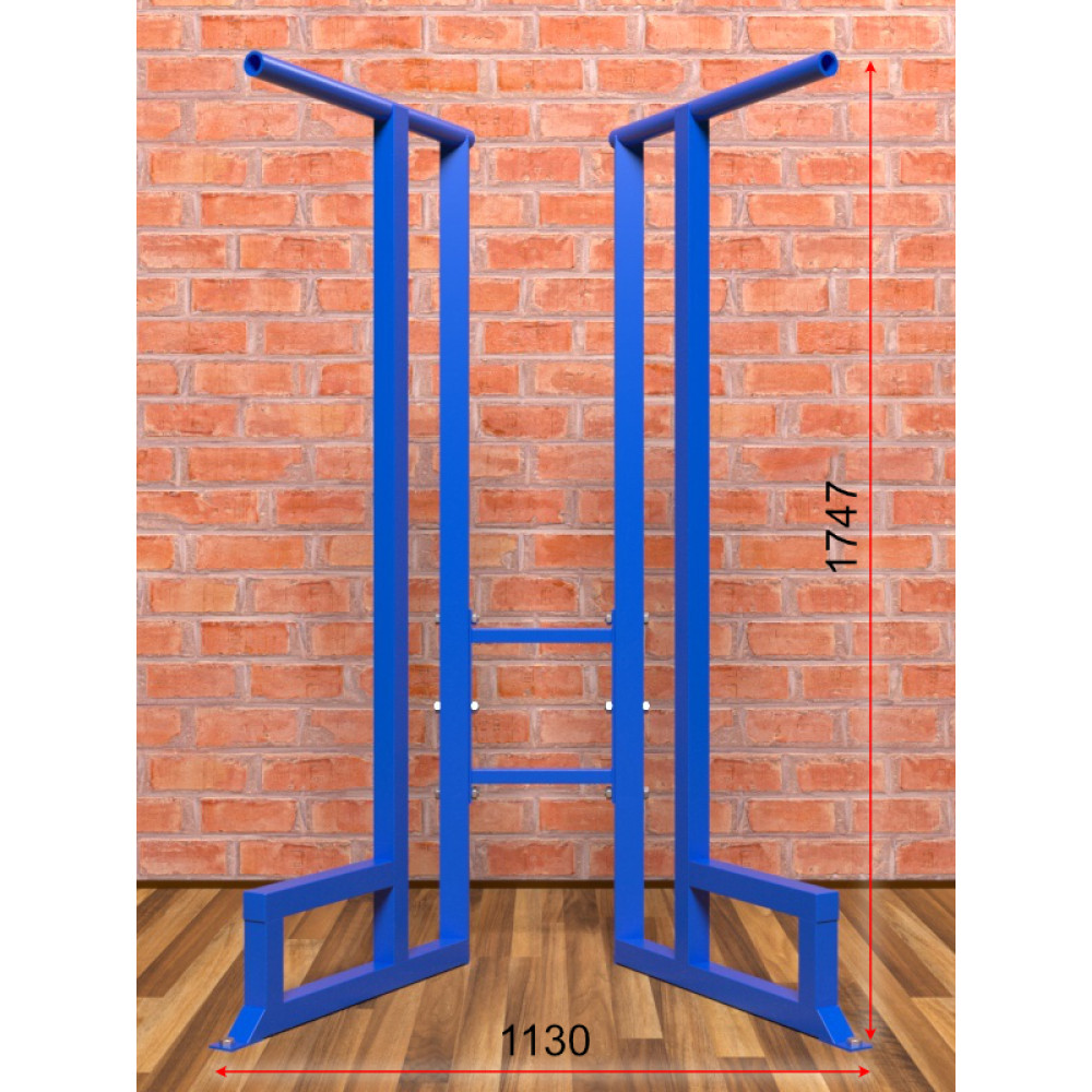 Каркас брусьев изготовлен из трубы 50х50 мм, изделие покрашено стойкой порошковой краской. Максимально допустимая нагрузка 180 кг.